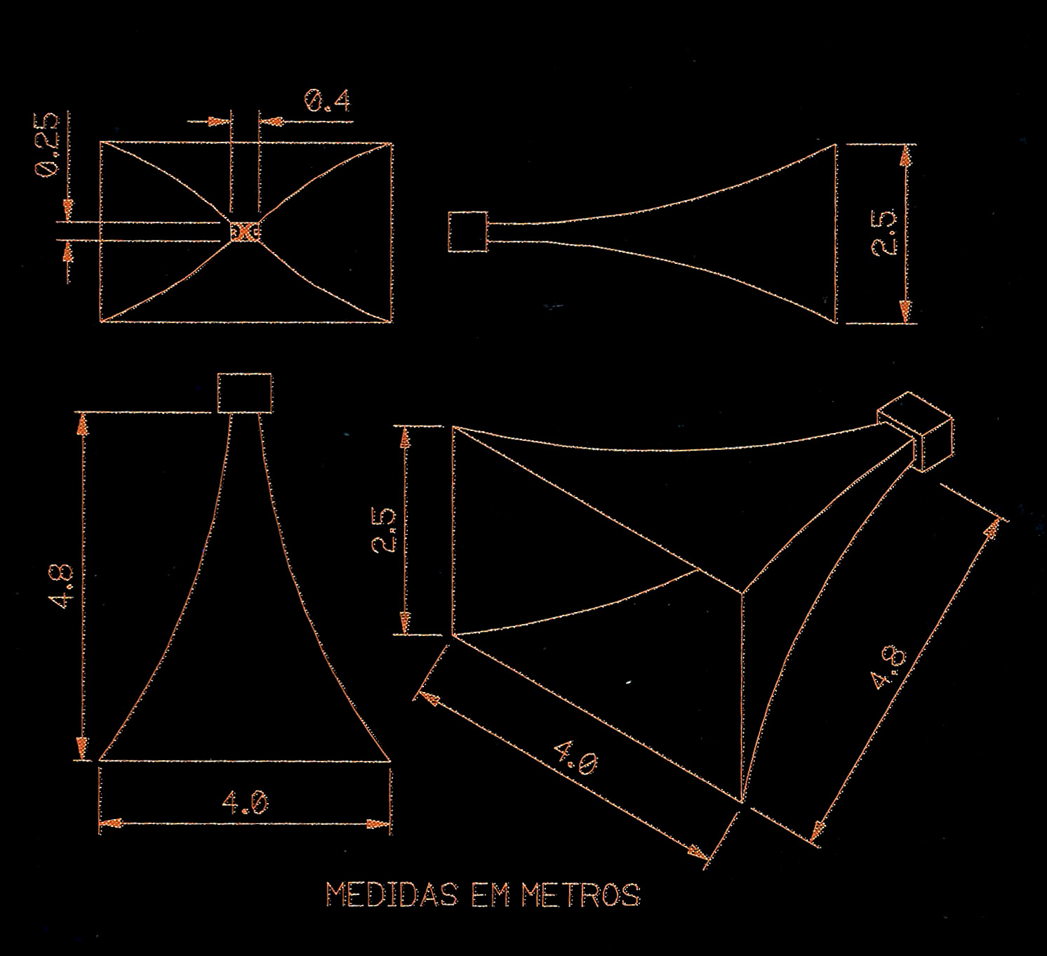 Quando se é levado a optar por uma corneta, depois de efetuados os cálculos, o projetista depara-se com dimensões excessivas (devido aos elevados comprimentos de onda das frequências em jogo), dificilmente aceitáveis na maioria das situações normais. Esta situação geralmente leva a um compromisso entre o ideal e o realizável, o teórico e o praticamente admissível. Para isso existem as cornetas com eixo dobrado - para diminuir a profundidade - e comprimento muito inferior ao necessário para que a função de casador de impedância ocorra adequadamente. Isso sem falar nas bocas de pequenas dimensões (cerca de meio metro quadrado de área). A consequência disto tudo é que, na maioria das caixas comerciais tipo corneta o resultado obtido é pouco melhor (ou até inferior) que o conseguida com caixas bandpass ou até mesmo de radiação direta, que são mais fáceis de construir e, portanto, mais baratas. As exceções ficam por conta dos sistemas em que cada corneta, embora de pequenas dimensões, recupera pane do desempenho com o empilhamento, ou seja, a associação de várias delas, o leva a uma área de boca suficientemente grande para a reprodução de graves. Por outro lado, a construção de uma corneta com as dimensões indicadas pela teoria conduz, como veremos, a resultados "devastadores" em termos de resposta nas baixas frequências e eficiência, com um mínimo de distorção. Para nossa sorte, o Sr. Mauricio Deconto foi perfeccionista o suficiente (ou maluco bastante...) para, após seis meses de projeto e oito de trabalho construtivo inaugural em primeiro de Janeiro de 1990 a sua obra, digna do Guinness Book do áudio. E isso sem falar nas longas discussões entre Maurício e o Falcão, debruçados sobre uma pilha de artigos da revista italiana Suono, sobre projetos de Difussori a Tromba, ou seja, cornetas, publicados nos números 155/163/164/ 166/169/170, entre abril de 86 e julho de 87; e o Reactance Annuling, de J. Plach ,e B. Williams, que saiu na Radio Electronic Engineering de fevereiro de 1955, com análogos elétricos, circuitos equivalentes e inúmeros gráficos, em um trabalho que causa admiração pela qualidade e atualidade do mesmo (coma aliás muitos outros daquela época).