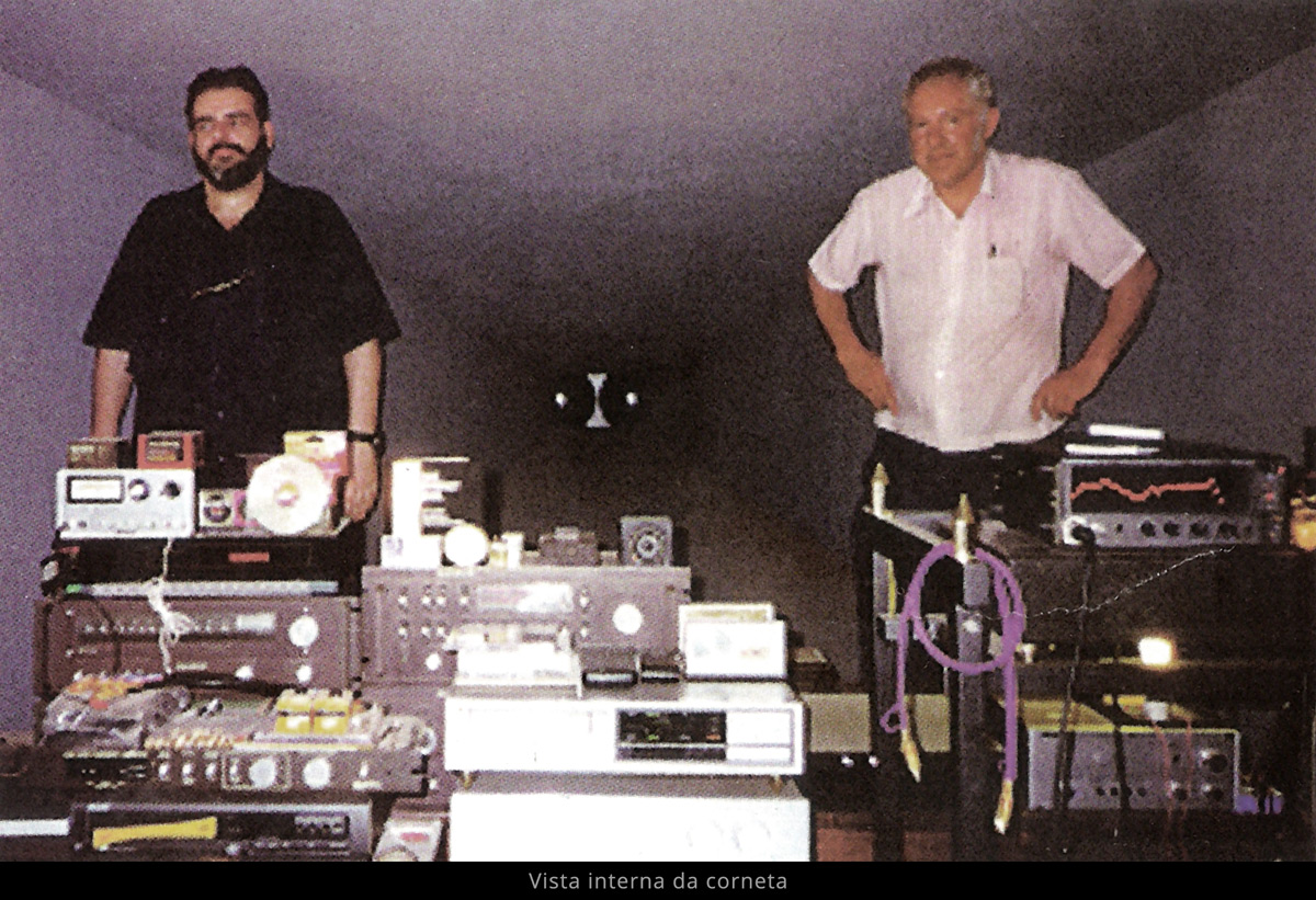 Os médios eram reproduzidos por falantes aproveitados de urn par de caixas Master 200, da Gradiente, sendo os tweeters de fabricação NC, tipo ribbon. O amplificador da corneta era um A1, velho de guerra.